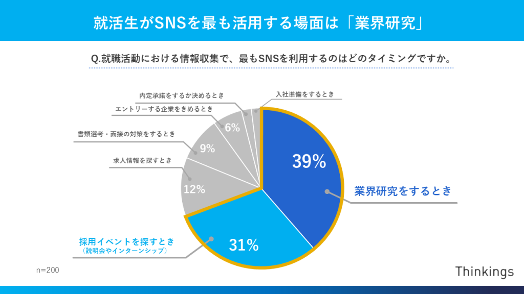 活用場面は、「業界研究をするとき」「採用イベントを探すとき」など多岐にわたっています。就職サイトの定型的な情報に加え、SNSでの幅広い情報が自分に合う職場かどうかの判断材料となっています。