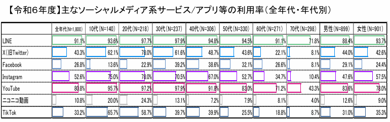 参考:総務省「令和7年版 情報通信白書|コミュニケーションツール・SNS」