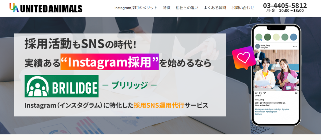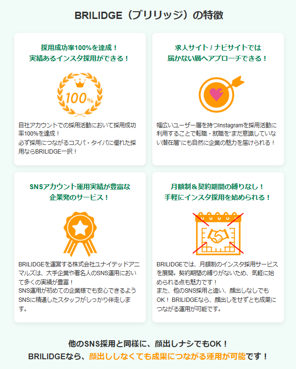出典元:SNS採用支援サービスBRILIDGE(ブリリッジ) | 株式会社ユナイテッドアニマルズ