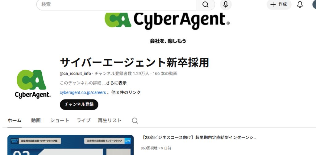 株式会社サイバーエージェントは、YouTubeを「入社後のイメージを具体化させる」ための強力な情報プラットフォームとして活用しています。