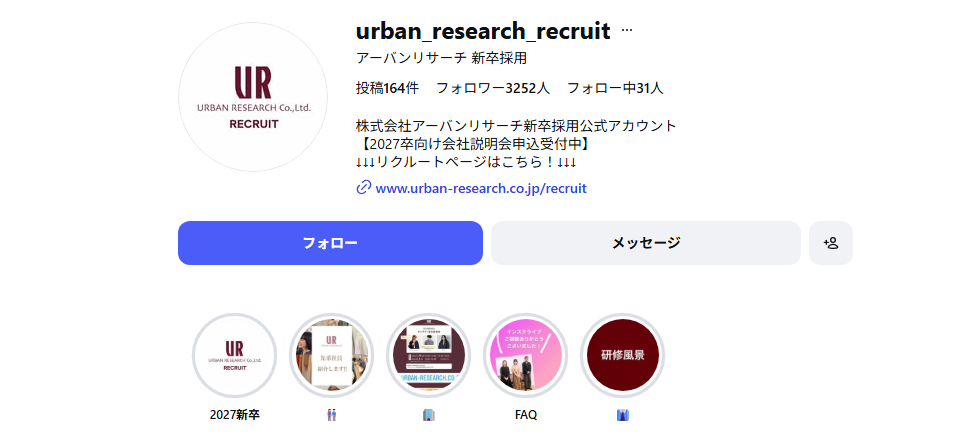 【Instagram】社員の魅力を可視化し新卒のファンを獲得:アーバンリサーチ株式会社