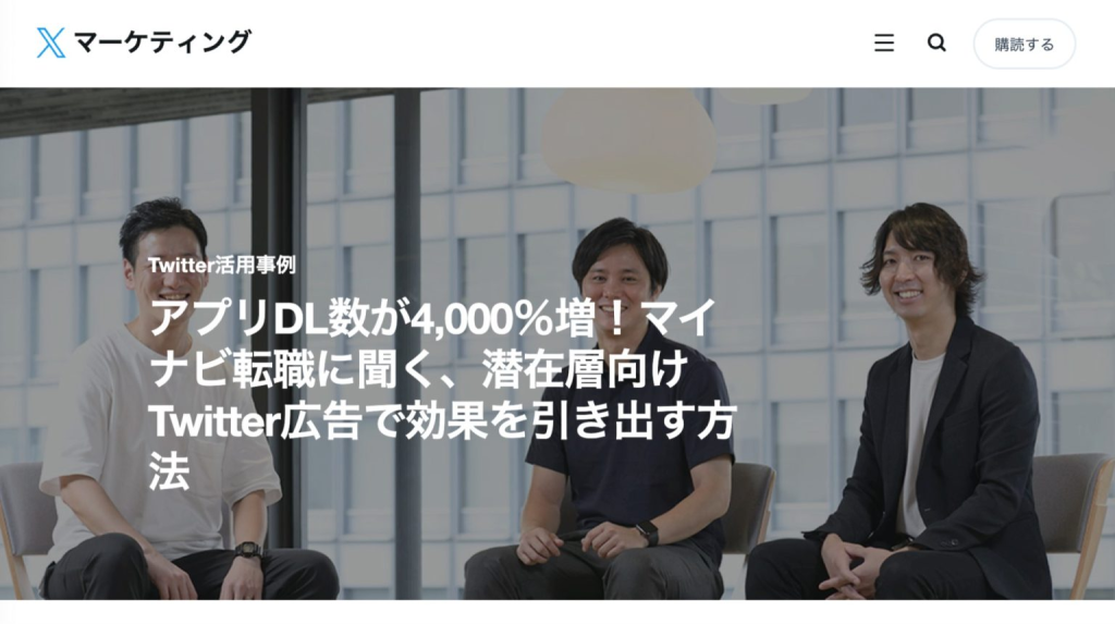 出典元:アプリDL数が4,000%増!マイナビ転職に聞く、潜在層向けTwitter広告で効果を引き出す方法
