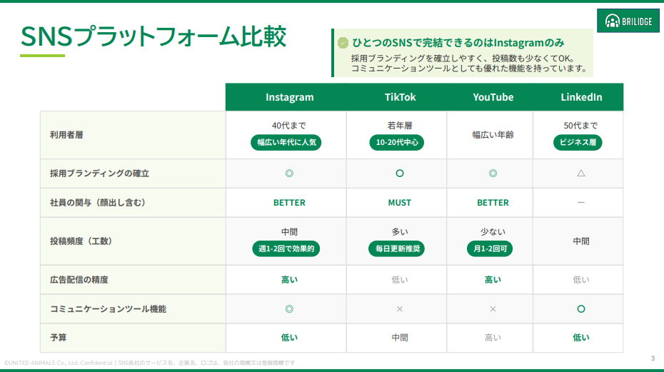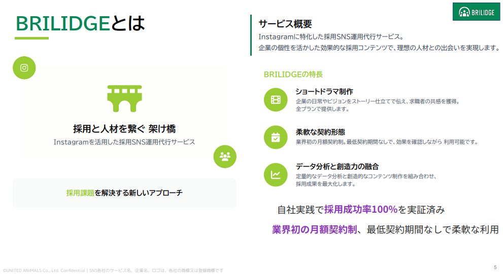 出典:SNS採用支援サービスBRILIDGE(ブリリッジ) | 株式会社ユナイテッドアニマルズ